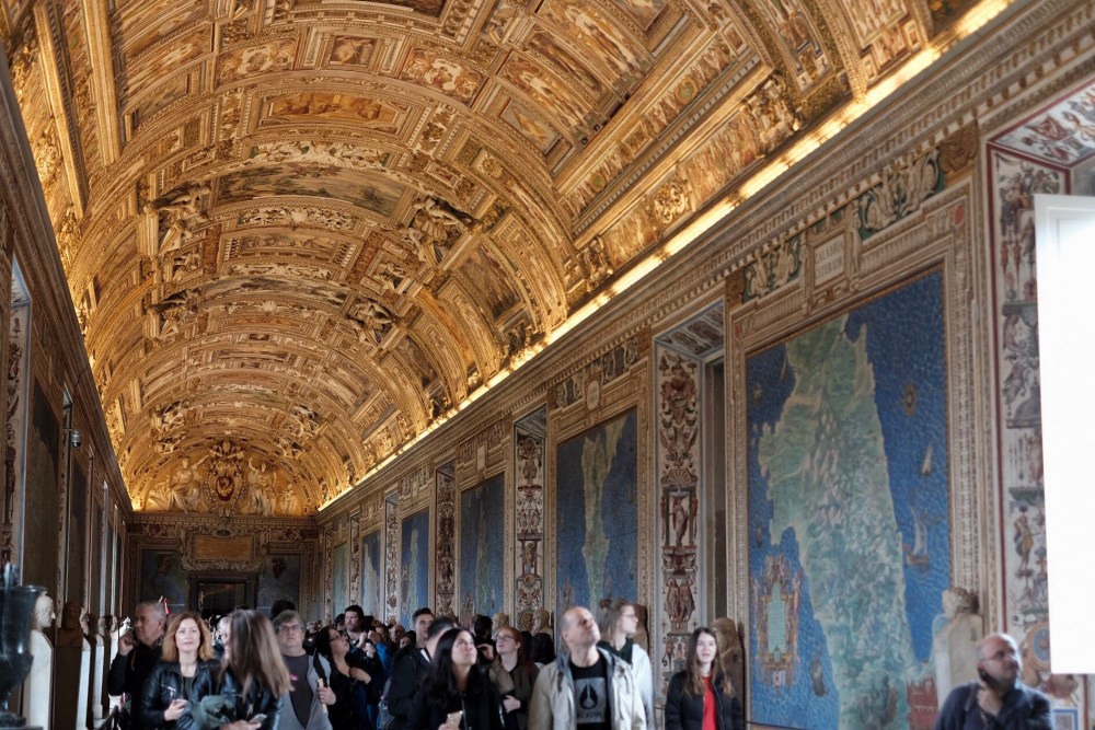 Along the tour in the Museum, you will find dozens of exhibition area, like Pinacoteca, Tapestry Wall, Map Room, and of course the Sistine Chapel. Before visiting any of those, try to see the famous staircase. The Bramante Spiral Staircase maybe one the most photographed art in the museum. Finding where is the staircase is a bit tricky. After scanning your ticket on the entrance you’ll come up with an escalator. After getting to the top, you will see lot of options and signs for the exhibition area but don’t get too excited yet because you need to head right to the Vatican Museums gift shops. This is where the famous staircase lies.